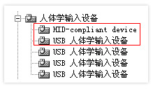 4.如果您看到“设备管理器”下的“人体学输入设备”增加了一个“未识别的设备”,请在上面点鼠标右键,选择“更新驱动程序”,在弹出的驱动程序查找路径指定为当前系统的系统盘(也就是您的电脑操作系统的安装光盘),确定后系统会自动安装被人为精简过的驱动。