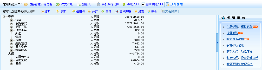 | 4、如果达到了执行中收支预算的预算提醒条件,打开财务管理首页的时候界面上方就会显示预算提醒图标。 |